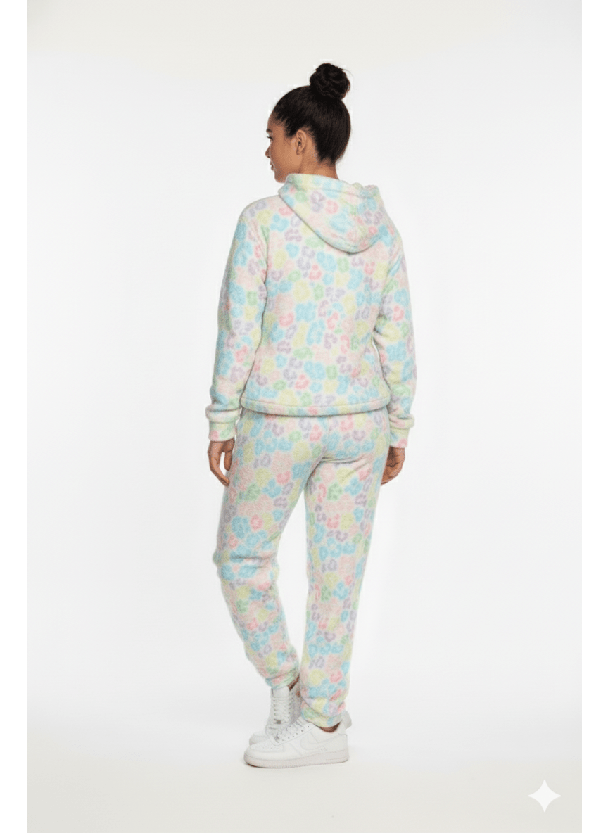Step into a world of vibrant comfort with The Pastel Pop Leopard Lounge Set! This eye-catching two-piece set is the ultimate blend of cozy texture and playful design. Crafted from a luxuriously soft, cloud-like micro-fleece, it delivers superior warmth and a feel that you'll never want to take off.