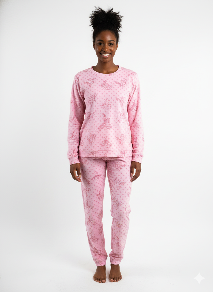 Cute, soft, and irresistibly cozy — our Bunny Blush Set is made for dreamy nights and lazy mornings. Designed in a delicate pink hue with adorable bunny sketches and soft polka dots, this pajama brings a touch of sweetness to your bedtime routine.