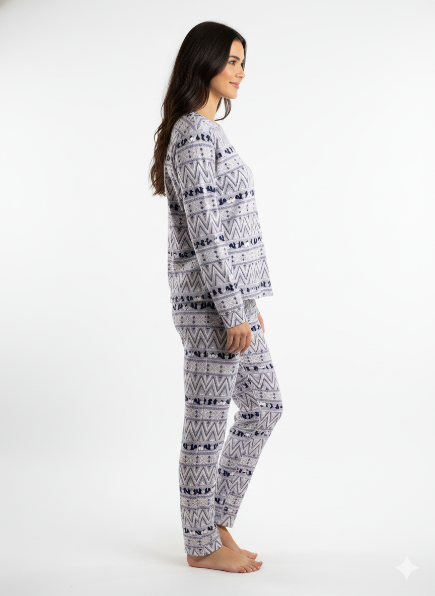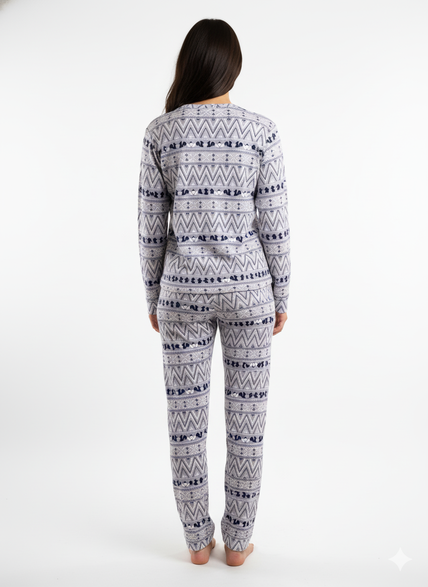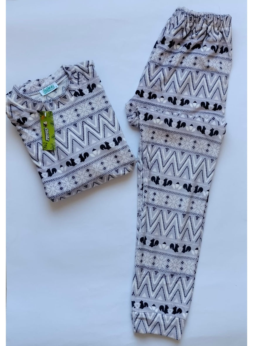 Stay warm and effortlessly stylish with our Frosty Squirrel Set, a winter favorite that combines comfort and cuteness. Designed with soft, breathable fabric and a charming squirrel-and-chevron pattern in cool grey tones, this pajama set adds a touch of playful elegance to your cozy nights.